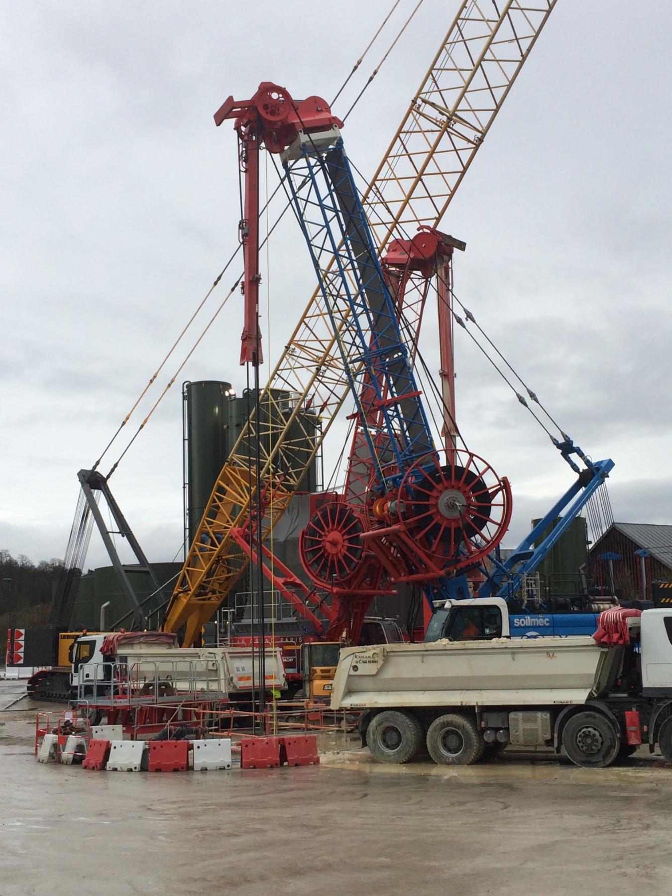 Il en est de même pour la gare d’Issy, où une troisième benne à câble fonctionne à proximité du bâtiment Garibaldi pour construire des parois d’1,2 m d’épaisseur pour 40 m de profondeur.