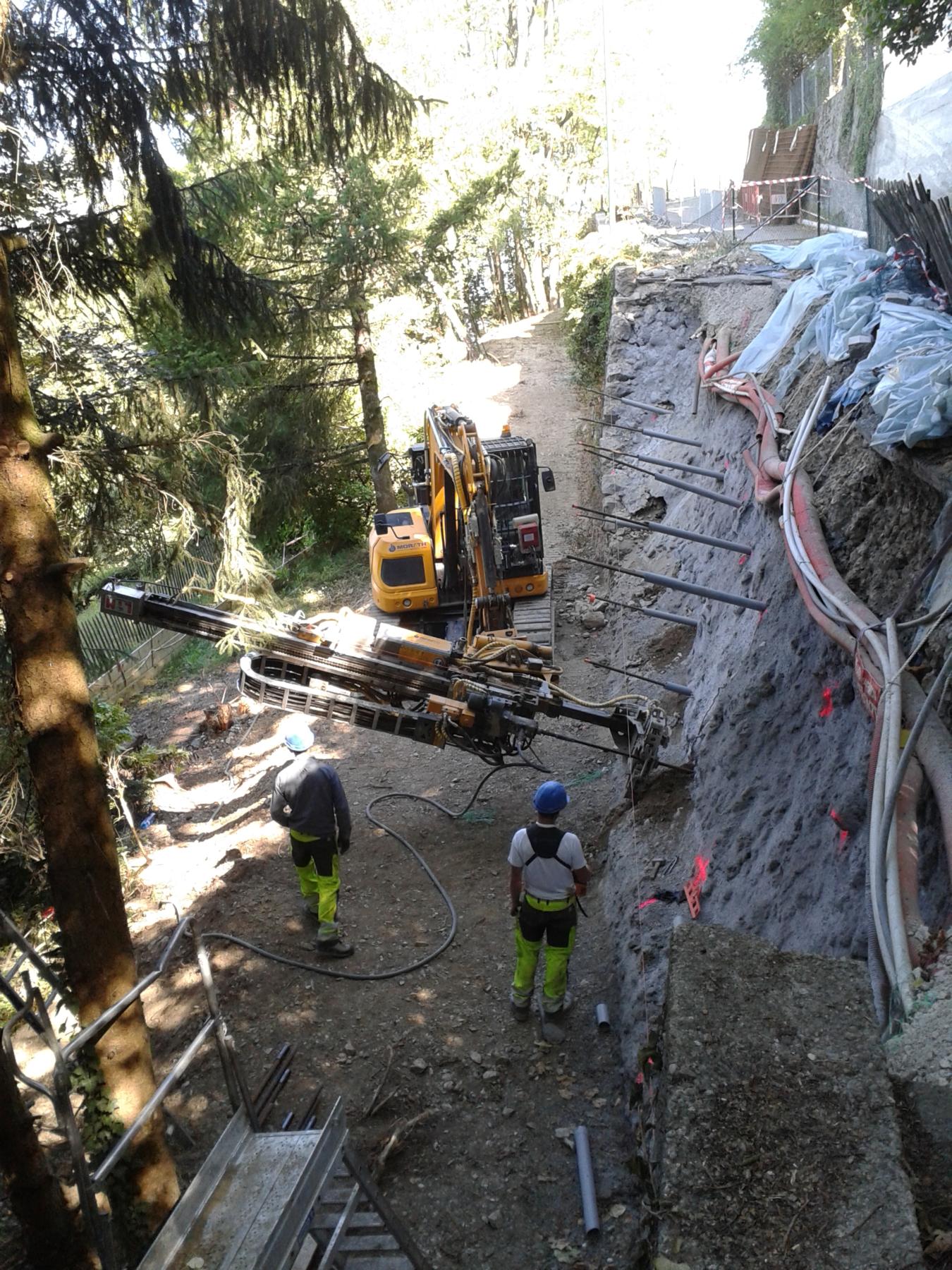 - un mur cloué, ouvrage ayant à la fois une fonction provisoire de mise en sécurité du talus et de la route et une fonction définitive de stabilisation locale et générale des terrains en place,