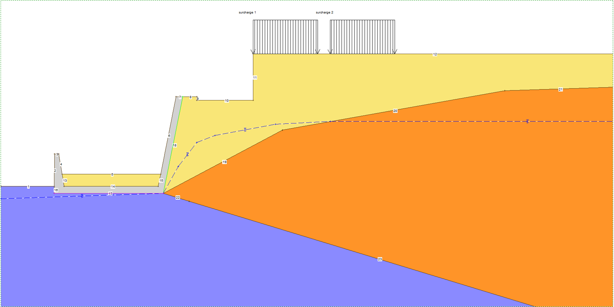 - Loads and surcharges, including inclined loads