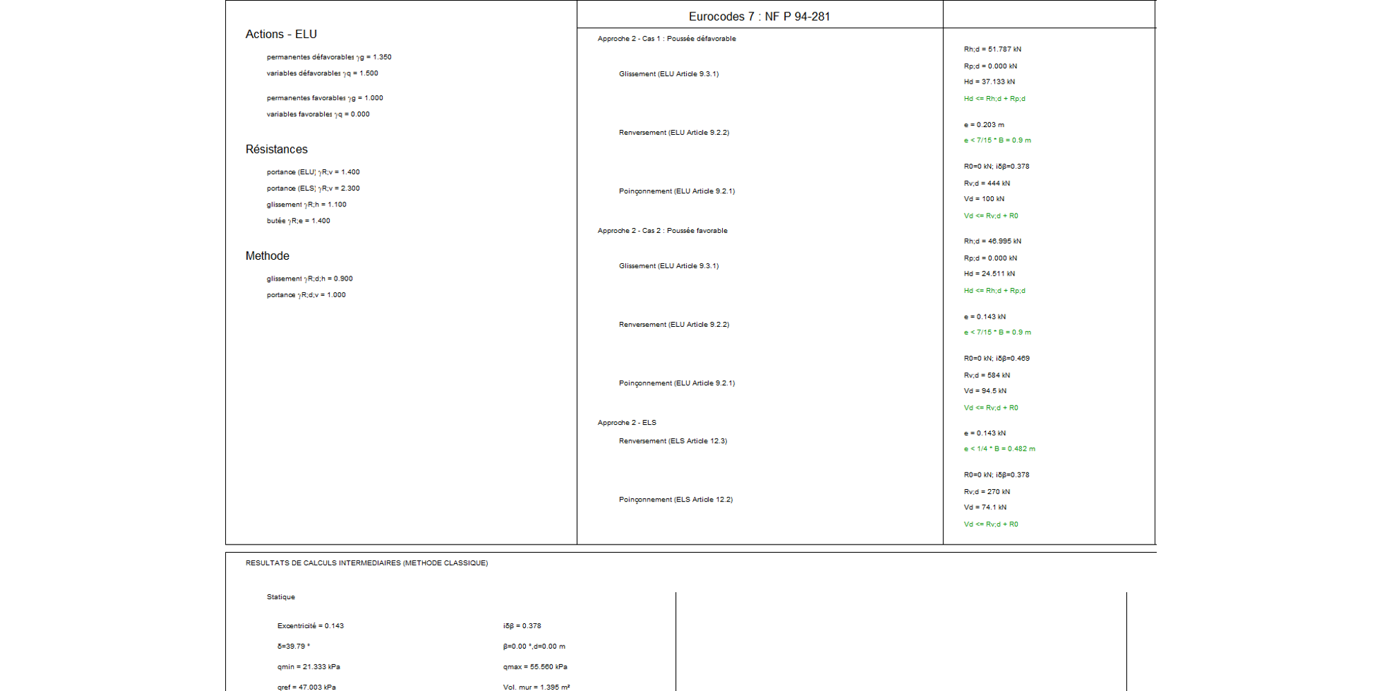 - Partial coefficients from various documents (Mur 73, Fascicule 62, NF EN 1997-1, P 94-281 and NF EN 1998-5)