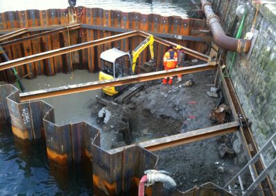 - Sheet pile connecting cells to allow connection to the existing distribution network maintained in service.