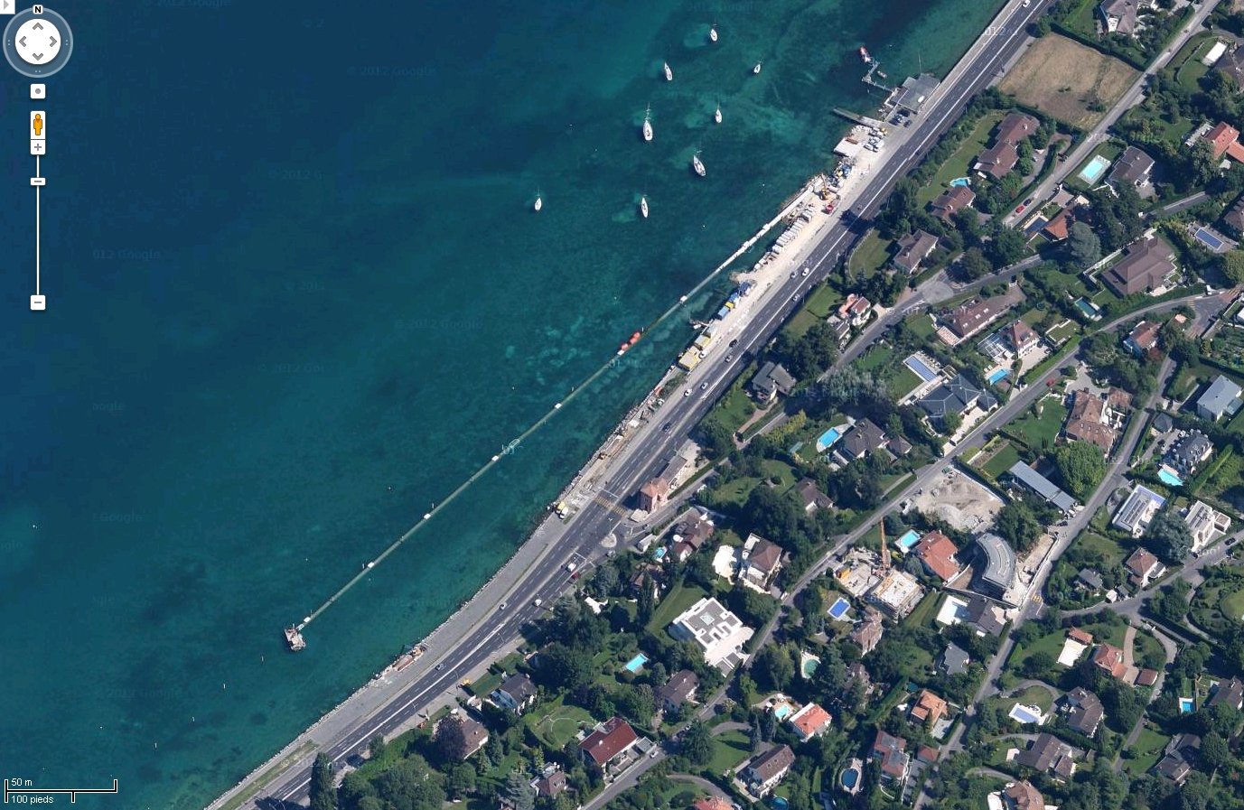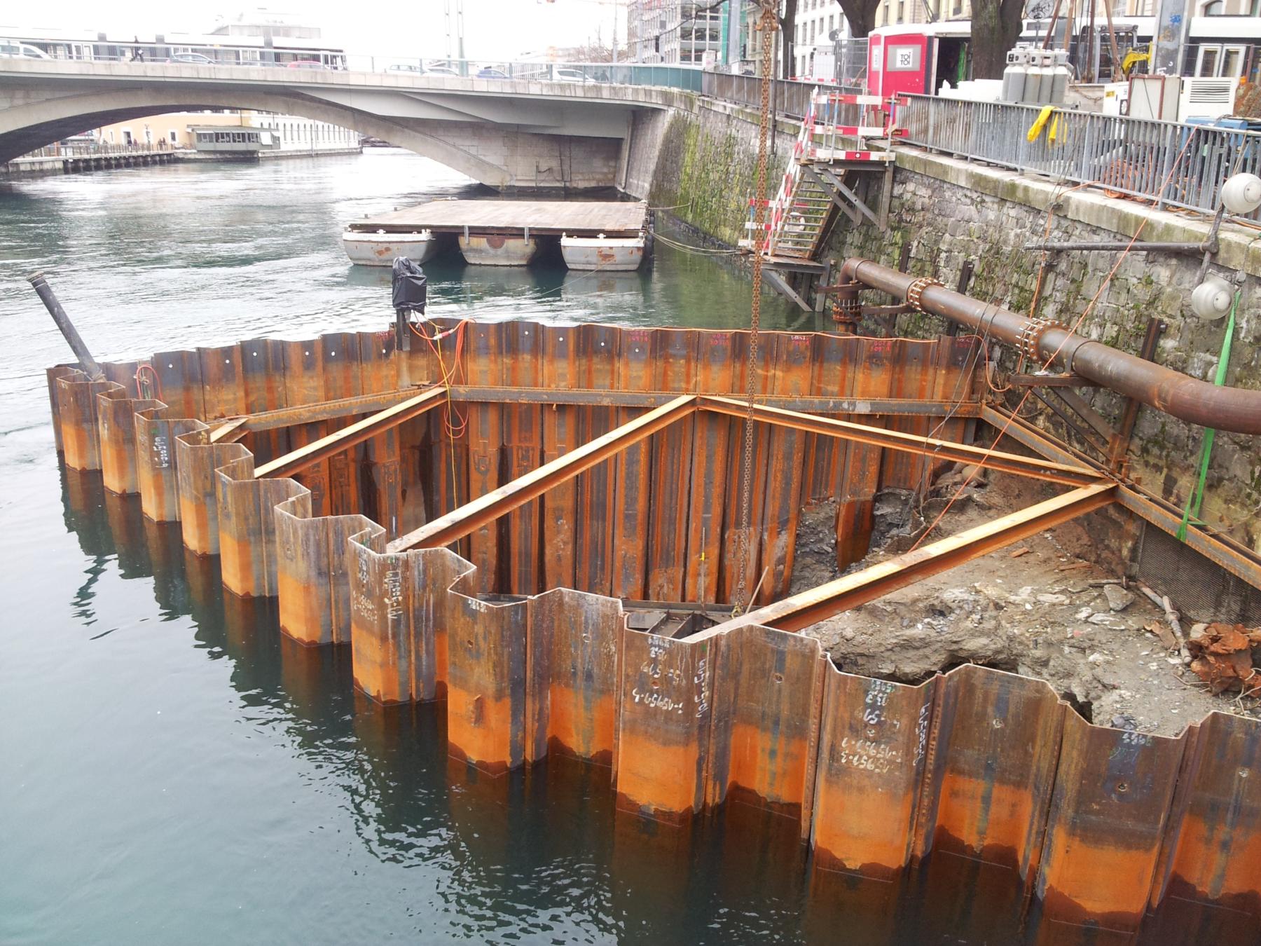 - Work in a lake and river environment. Since the Rhône River was used as a flow regulator for the waters of Lake Geneva, the works had to be planned and carried out in close coordination with the authorities responsible for regulating the flows of the Rhone.