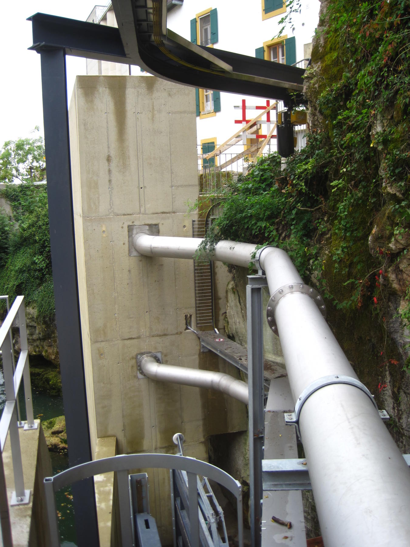 Au vu des difficultés rencontrées pour l’implantation d’une passe à bassins classique, l’installation d’un ascenseur à poissons s’est imposée comme  solution éprouvée dans des situations étriquées où il y a un manque évident de place.