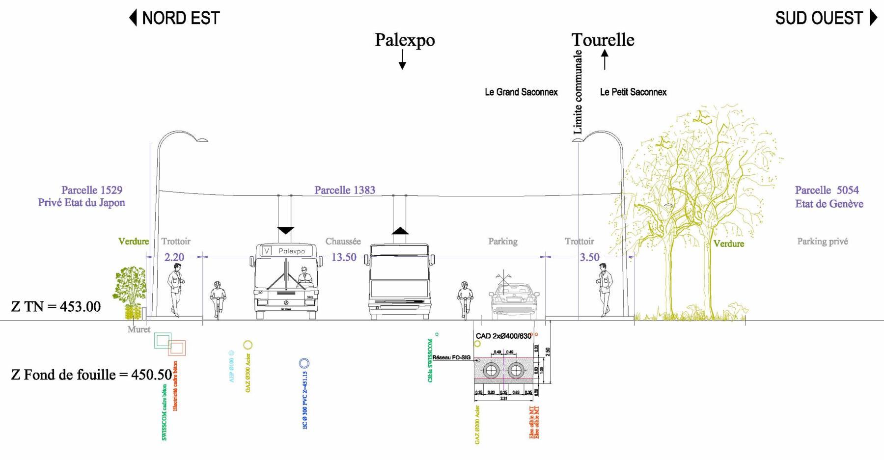 - Réseaux existants permettant le passage du réseau CAD (tant en planimétrie qu’en altimétrie).