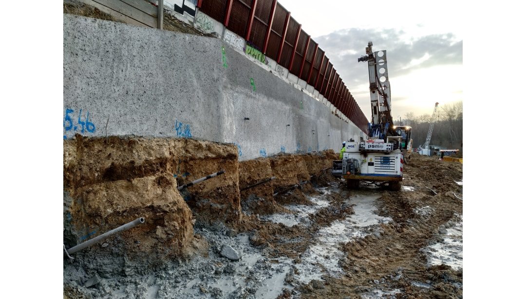 Les travaux du futur Tram T12 Express se poursuivent. La première paroi clouée du lot OAG3, réalisée dans le talus situé à l’aval de l’autoroute A6 en circulation au niveau de la commune de Savigny-sur-Orge vient d’être finalisée. Il s’agit d’une paroi de 6 m de hauteur, soutenue par 4 lits de clous dont la longueur varie entre 7 et 9 m. Cet ouvrage permet de dégager les emprises nécessaires pour l’estacade du futur tram.